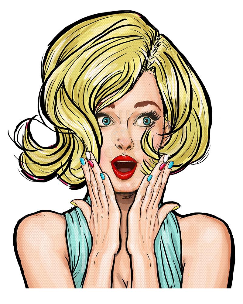 Jedlý pop-art obrázek Blondýnka na dort. Stačí napsat výšku obrázku do poznámky v košíku. Maximální výška obrázku je 24 cm (při této výšce je šířka obrázku 19,9 cm).